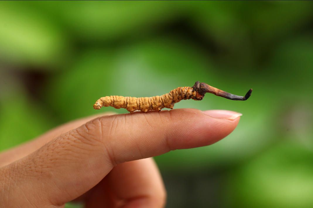 野生冬蟲(chóng)夏草是蝙蝠蛾科昆蟲(chóng)幼蟲(chóng)被冬蟲(chóng)夏草菌感染后形成的蟲(chóng)與草的結(jié)合體。