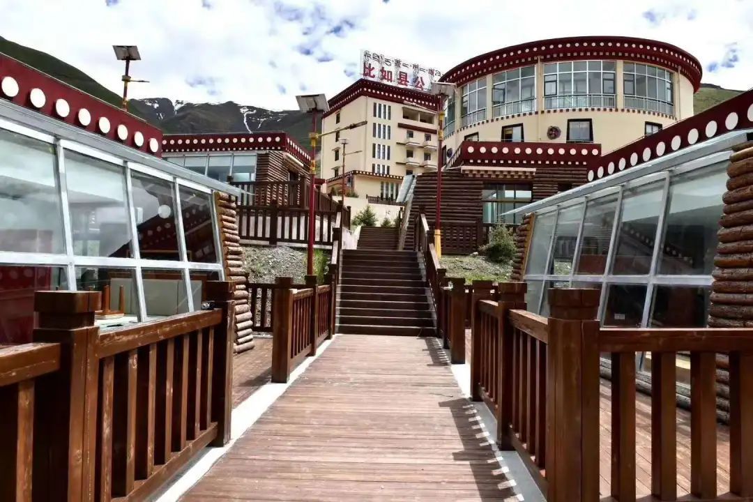 公主溫泉康養(yǎng)中心,是唐蕃古道文化旅游景區(qū)的主要住宿設(shè)施,酒店借鑒傳統(tǒng)的藏式風(fēng)格建筑,融入了現(xiàn)代江南水鄉(xiāng)的建筑風(fēng)格。酒店建筑面積3222.5㎡,樓高5層,建筑高度17.5m,客房共有45間,床位70張,餐廳可同時(shí)容納300人就餐,停車場可容納60輛左右的車位。
