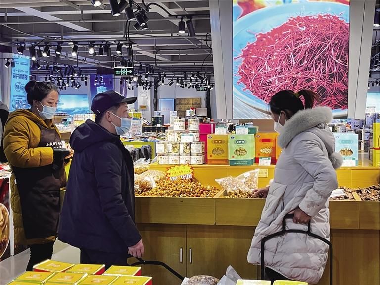 1月9日,記者來到西藏特產(chǎn)倉儲超市(乃倉店)進行實地走訪。走進超市,牦牛肉干、藏紅花、藏香豬肉、酥油茶、靈芝孢子粉等數(shù)百種西藏特產(chǎn)讓人眼花繚亂。雖是工作日,但前來購買特產(chǎn)的市民絡繹不絕。“馬上過年了,想挑選一些西藏特產(chǎn)帶回去。”前來購買特產(chǎn)的李女士說,“今天主要買了西藏本地產(chǎn)的蟲草酒和藏蜜,送長輩很合適。”