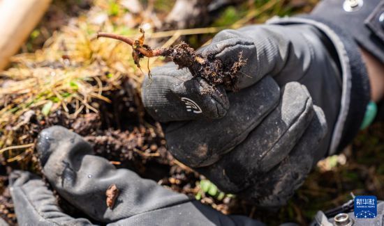 這是在那曲市索縣西昌鄉(xiāng)拍攝的剛採挖出的蟲草(5月18日攝)。新華社記者 丁增尼達(dá) 攝