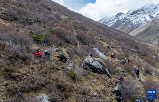 在那曲市索縣西昌鄉(xiāng),牧民在尋覓採挖蟲草(5月18日攝,無人機(jī)照片)。新華社記者 丁增尼達(dá) 攝