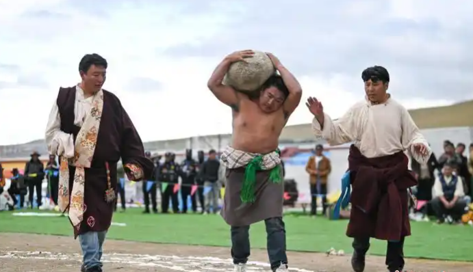圖為那曲恰青賽馬節(jié)抱石頭比賽現(xiàn)場(chǎng)?!∝暩聛硭?攝