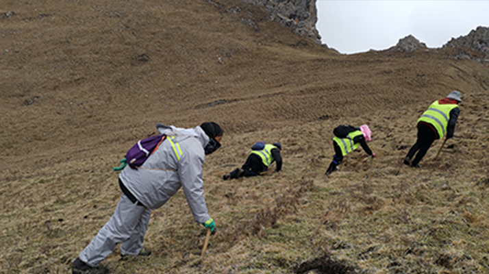 挖草:發(fā)現(xiàn)蟲草后,用小鏟子在距離蟲草根部 10—15 厘米處輕輕挖開凍土,避免鏟斷蟲體;再順著蟲體慢慢剝離土壤,確保蟲體完整。